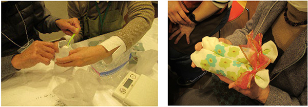 アロマオイルを使ったシューズキーパー作りを当事者の方と一緒に行いまして、素敵な香りに癒されながらおしゃれなシューズキーパーを作ることができました。また、ご家族(介護者)とは座談会を行い、様々な話を聞くことで、共感しあう場面やかかわり方で苦労した話、工夫した話、今後の不安などの話を聞いて話し合うこともできて、有意義な時間になったようです。